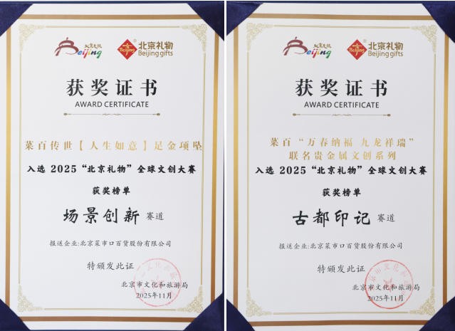菜百股份多款产品入选 2025“北京礼物”全球文创大赛获奖榜单(菜百股份简介)