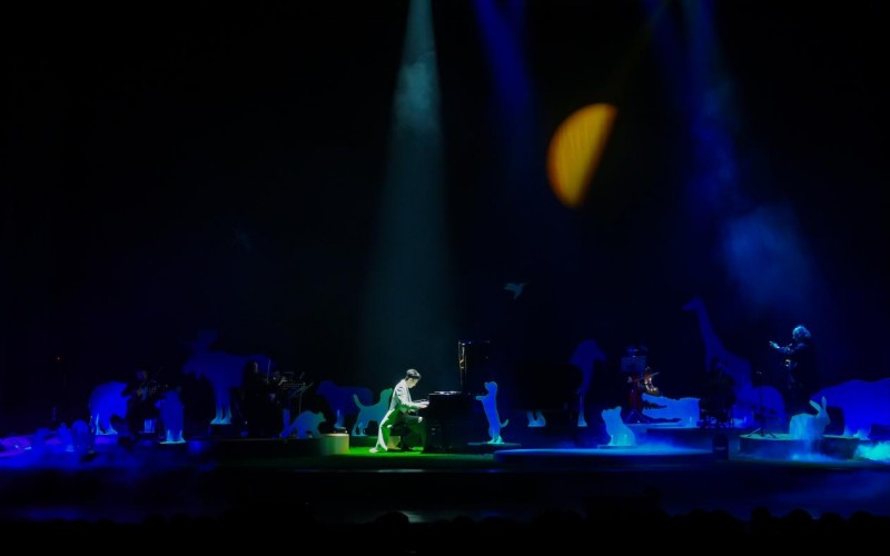 龚钰祺《月光动物园》暖心启航!首站于上周末11/7、11/8温暖开演,曝光许多惊喜,舞台上除了阿龚三只爱犬化为荧光宠物,也让陆海空二十多种动物北极熊、狼、长颈鹿、海豹...等在绿色草皮舞台的幻境中现迹。最惊喜的动物到访者则是嘉宾“韦鸟”韦礼安特地飞来共演,与阿龚携手带来三首弦乐改编歌曲。这座动物园里的人也各就各位:远从德国飞来的 Bernd 兼任指挥与萨克斯风手,而苏打绿团员馨仪担任节目导演、小威担任录音指导陪着孩子小 Moon 完成每段乐章的真挚引言,全场琴声与啜泣声此起彼落。