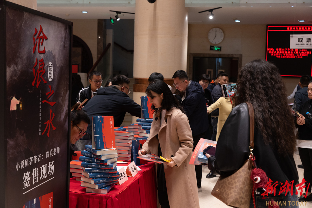 两场演出开场前,阎真均在剧场前厅为观众签名留念。阎真说,虽然自己是小说作者,但第一次看话剧时依然留下了眼泪,“舞台的力量让文字里的思考变得更鲜活。”