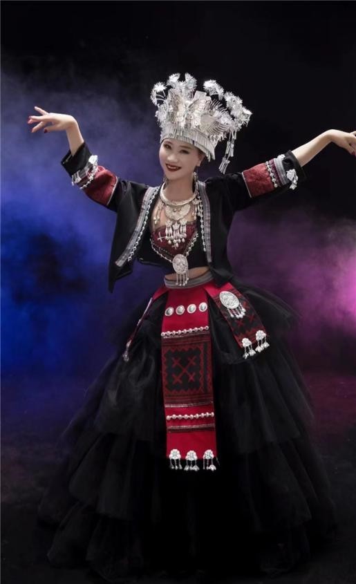 这正是艺术与土地最美妙的共鸣。在九黎城凭借其丰富的文化旅游资源荣获全国非遗与旅游融合发展优秀案例的背景下,夏冰有幸作为长期合作的编导参与其中,为娇阿依艺术团精心打造了近十件精品佳作。这些作品如同涓涓细流,融入了九黎城这片文化沃土, 在景区自身丰厚的旅游资源基础上,夏冰以歌舞为媒介,致力于挖掘苗族文化的精髓,用艺术的形式让游客在观光之余,能够从美的角度体验到苗族歌舞的独特魅力。 她始终认为,艺术创作应当如溪流汇入大河,自己只是这文化长河中的一滴水,静静地随波流淌, 但求能通过舞蹈语汇传递出人民内心深处的声音。