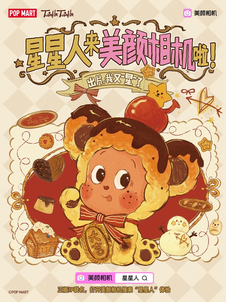 此次联名的星星人是泡泡玛特2024年签约推出的潮玩IP,凭借可爱萌趣的形象和温暖治愈的情感内核,星星人快速成长为广受用户喜爱和市场欢迎的新锐IP之一。