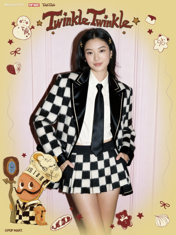 此外,美颜相机还首次将潮玩IP形象与AI玩法融合,将于圣诞节上线星星人“美味时刻”系列中“慵懒时刻”和“披萨的永恒”同款穿搭——赫本风的优雅电子黑裙和酷飒棋盘格电子套装,用户通过“AI换装”即可一键试穿,快速体验星星人穿搭。