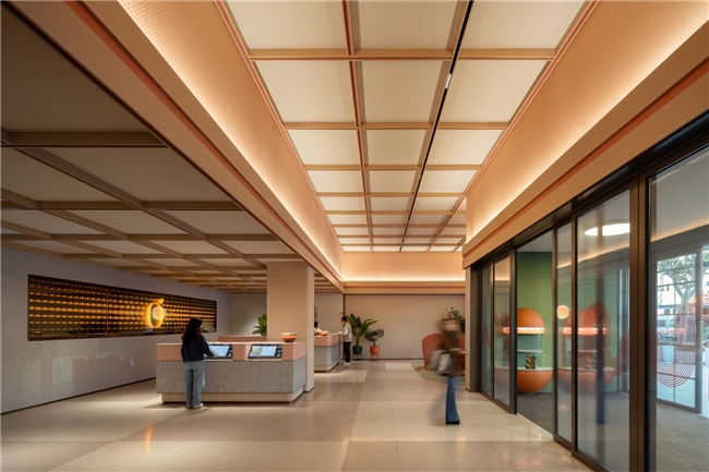 走进任何一家桔子酒店,你很难不感到心情愉悦:桔色与绿色交织的阳光空间,随处可见的多巴胺几何图形,以及空间里弥漫的清新柑橘香,从视觉到嗅觉,先为你奏响了“快乐前奏”。它还大胆摒弃了传统的商务制服,自由染发、美甲,让员工也能真实地“做自己”。