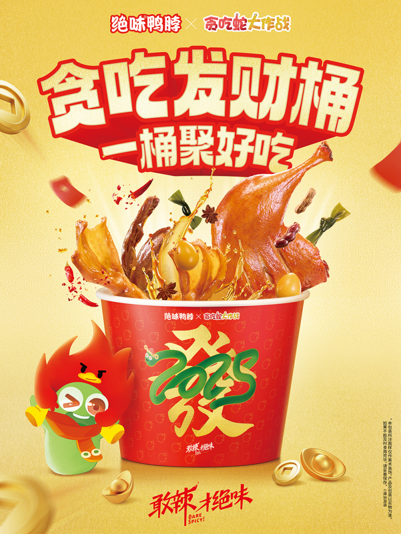 可靠的供应链支持则为此次联名的大规模落地提供了有力保障。绝味食品构建了覆盖全国的24小时鲜送供应链体系,通过数十个现代化生产基地,实现了卤味产品的集中生产与统一配送。从食材采购到生产加工,再到冷链运输,每个环节都经过严格把控,确保“贪吃发财桶”能够在全国门店同步新鲜上线。即使在新春消费高峰期,强大的供应链能力也能保障产品供应充足,让消费者随时都能购买到联名产品,避免因缺货影响消费体验,进一步巩固了联名带来的流量转化成果。