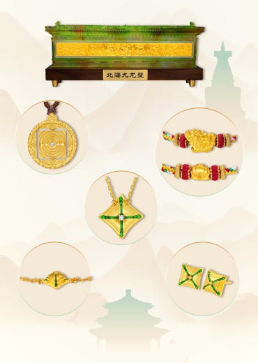 菜百股份与景山公园、北海公园两大文化单位联名的“万春纳福”“海誓金盟”系列多款足金作品,成功入选“古都印记”赛道。