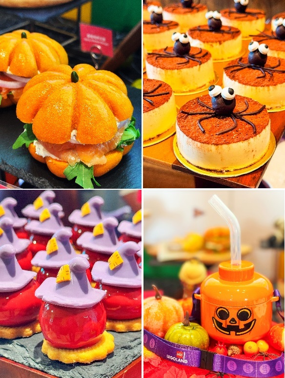 主题活动期间,乐园的主题餐饮也全面“变装”,多种特色美味已经就位,等你来打卡品尝。在积木大街咖啡厅,不给积木就捣蛋甜甜圈以及乐高乐园®DIY角色饼干限时上新,饥饿大嘴龙厨的汉堡变身南瓜造型,让美食也充满节日的氛围。城市餐厅为游客准备了小幽灵披萨,积木街道咖啡馆则呈现各式蜘蛛和蜘蛛网造型的甜点,把舌尖上的搞怪氛围拉满。骑士餐厅不仅准备了主题家庭套餐,还有小怪兽盛宴派对主题自助晚餐会在10月25-26日、31号以及11月1-2日限时供应,玩了一整天的大小游客们可以一起大快朵颐,给疲惫的肠胃“充个电”。另外,各个主题区还有多款限定特饮惊喜上线,更有南瓜头角色纪念杯等你带回家。