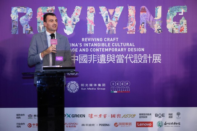 刘侃总领事在致辞中表示:“中意两大文明古国虽相隔万里、语言相异、文化背景亦不相同,但同样悠久璀璨、饱含两国人民的智慧和匠心。本次展览集展出百余件中意非物质文化遗产佳作,通过人工智能和多媒体技术打造场景重现,为非遗作品注入鲜活的生命力,为古老文明赋予新的时代内涵。”