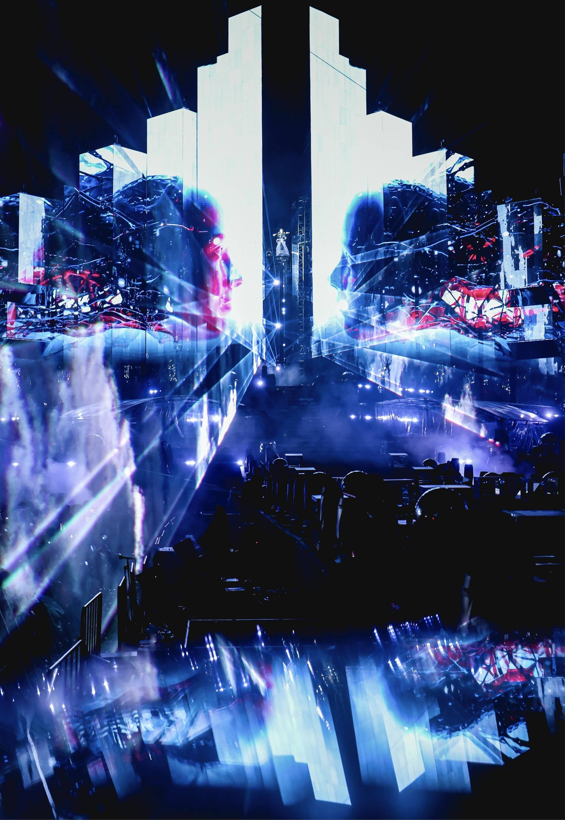 如果说乐园场的夜晚是火星独有的盛大典礼,那么下午场便是一首首灵动的即兴诗。不插电环节里,华晨宇用《飞行模式》《烟火里的尘埃》《名场面》等歌曲燃动了每一位现场听众的心,乐园限定环节“为歌迷过生日”则让现场变得温暖又趣味盎然。当夜幕成为画布,晚上场便拉开了一场极致美学的视听盛宴。在《地球之盐》《神树》的震撼开场中,主舞台以“未来城市”为概念,运用可升降机械结构和全息投影技术,打造出不断变幻的视觉奇观。在华晨宇演绎《好想爱这个世界啊》时,舞台则切换至一个透明的玻璃花房,在这个独立的小小宇宙中,花丛随着华晨宇的歌声被注入了温度与色彩,从素净渐变为斑斓,以极具诗意的视觉语言,温柔回应着歌曲的主题。《忒修斯的船》环节,舞美则直接将一艘10米高、充满哲学隐喻的巨型充气船呈现于舞台上,其庞大的体量伴随着冲击雾,在如梦似幻的特效中带来无与伦比的视觉冲击与心灵震撼。值得一提的是,此次南京站演唱会在“家”舞台两侧新增了T字型升降延展台,极大地拓展了最佳观赏区域,让更多粉丝能近距离感受表演。在《怪诞心理学》、《斗牛》环节中,华晨宇走上延展台与观众沉浸互动,将现场气氛一次次推向高潮。五块巨型屏幕与五个舞台精准配合,360°捕捉现场每一个精彩瞬间。这一切,都完美诠释了华晨宇对粉丝说的那句“只能宠着了”,力求为大家奉上最极致的观演体验。