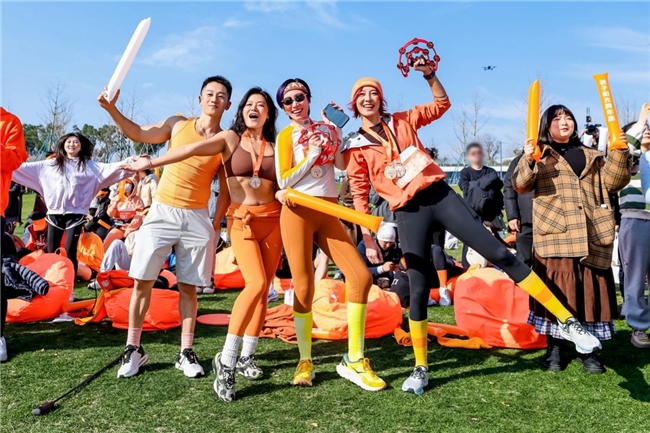 早上9点,世博文化公园的宁静,被四处迸发的多巴胺球、音乐和跑者们的呼喊所打破。超1000名桔子粉丝,踏上5公里的追日跑。一群群人穿梭于疏朗的林木与开阔的草坪之间,像一场把自己扔进阳光和风里的冒险。多巴胺和内啡肽悄然组队上线,唰地一下,积压的疲惫与焦虑跟着汗水一起蒸发,身心在奔跑中逐渐加满“热情”。