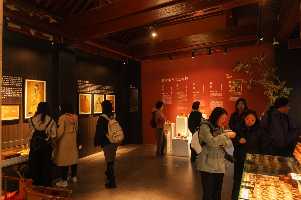 展览共分为六大板块,分别是:“初识:木石为开”、“传说:山海之东”、“良器:弓鸣藏锋”“钦选:皇家御用”、“福佑:宝刹拥毓”和“传承:巧物精极”,展现柘树在中华历史文明发展进程中的重要历史文化和应用故事,此外,展览还通过非遗技艺和AI技术制作了众多展示作品,生动还原了古代文献中关于柘树的记载或故事,让观众能够更直观的感受到柘树的历史底蕴和文化魅力。