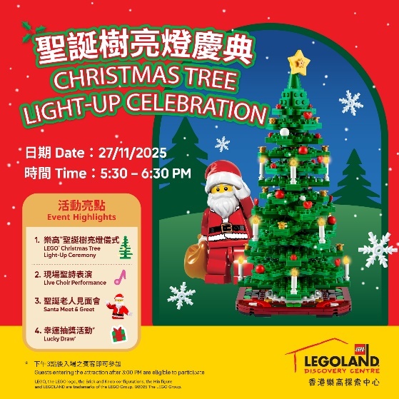 “圣诞不仅是礼物,更是分享与关怀。” 快来“圣诞乐高®缤纷小镇” 敲响圣诞钟声,参加2025年11月27日的圣诞树亮灯仪式!当天下午三时后付费入场的宾客或年证持有人,还可获得限定圣诞礼包(数量有限,先到先得,送完即止),欣赏现场的圣诞颂歌演出。让我们与挚爱一同拼砌爱心,分享快乐,共同迎接这个特别的圣诞节!